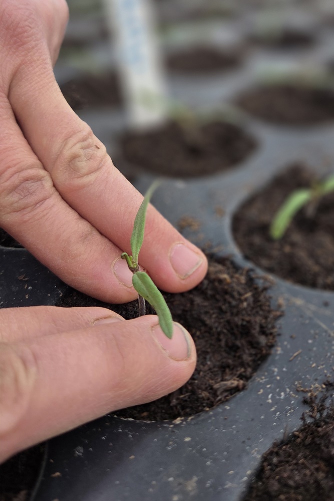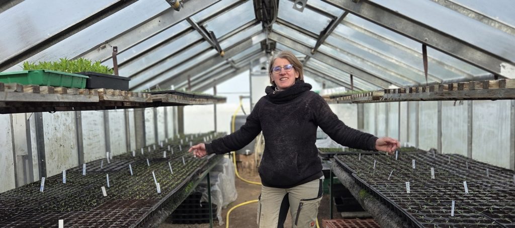 Mandy freut sich in ihrem Reich, dem Anzuchtgewächshaus, wo es sprießt und wächst!