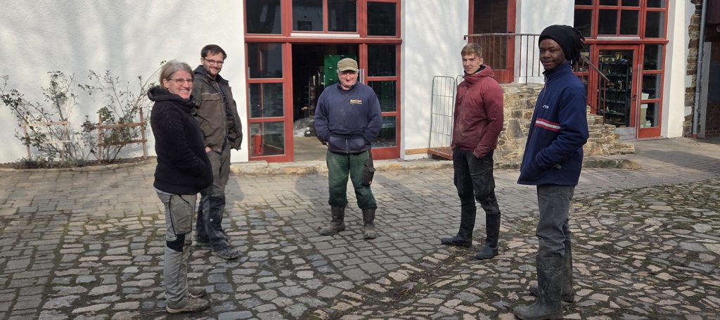 Lawi-Besprechung, so heißt der Kreis, der sich dreimal täglich bildet. Mit Paule, Gerd, Mandy, Lukas und Emmanuel werden die anliegenden Arbeiten besprochen und verteilt. Heute komme ich dazu und bitte um ein freundliches Foto… und siehe da, nach drei Versuchen lächeln mich alle an! Grund zur Freude gibt es nämlich genug: