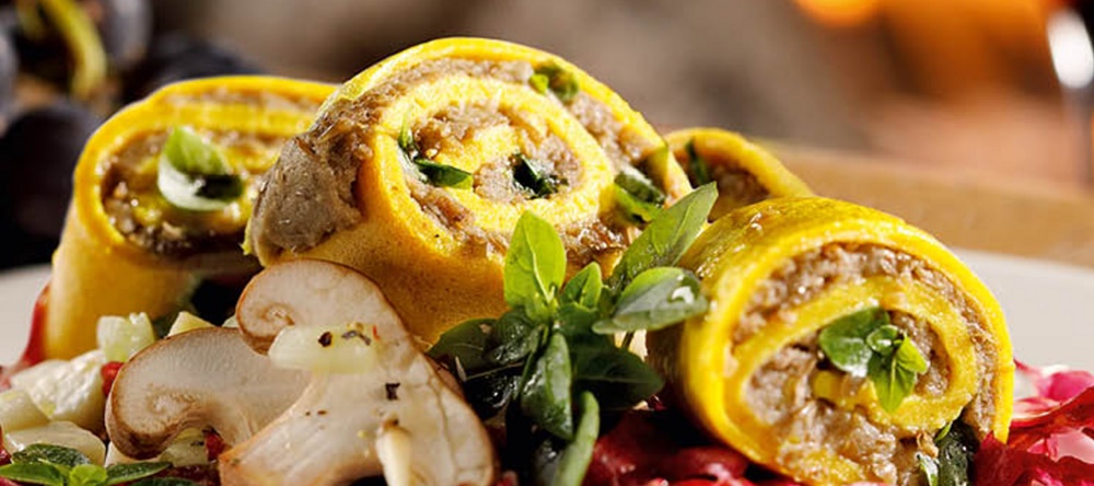 Alle Zutaten zu einem glatten Teig verrühren und diesen etwas quellen lassen. Etwas Öl in einer Pfanne erhitzen. Nacheinander 4 dünne, goldgelbe Crêpes backen. Mit Linsenpüree bestreichen, aufrollen und für ca. 6 Stunden kalt stellen. Anschließend in schräge Scheiben schneiden.