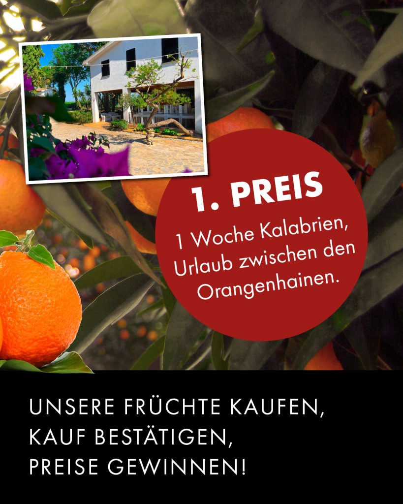 Gewinnt eine Reise nach Kalabrien zum idyllischen Landgut Masseria Brica Rossa, in die Orangenhaine Kalabriens. Außerdem könnt ihr mediterrane Genuss-Pakete gewinnen. Was müsst ihr dafür tun? Die saftigen Orangen und Clementinen von BIOSYBARIS bei uns kaufen und auf bioladen.de den Kassenbon oder die Rechnung hochladen.