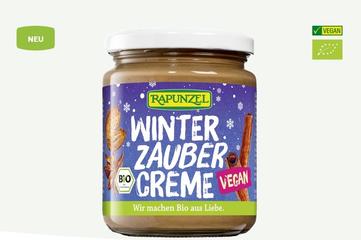 Drei Produkte mit Wohlfühlcharakter und Geschichte: Bianca, die unsere Trockenwaren packt, stand verwirrt vorm Kosmetikregal: Wo steht, denn die Winterzaubercreme? Ah, vielleicht im Käsepackraum – ein Frischkäse? Letztlich war es unser neues Rapunzelprodukt: Winterzaubercreme auf frischem Brötchen, ich gönne es mir.