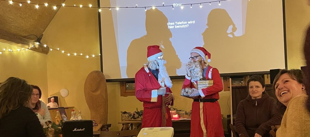 Neben einem kleinen Rückblick und Ausblick auf das Jahresgeschehen ist das Highlight unsere zwei Weihnachtsmänner, die sich zur Geschenkeübergabe immer einen neuen Gag einfallen lassen.