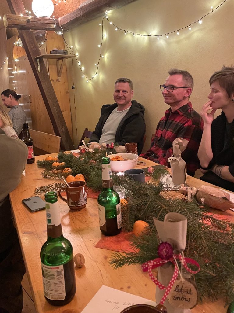 Mit leckerem Essen, was wir in der Mitarbeiterrunde zubereitet hatten und Bio-Rostern, vom Hof Schömbach, sorgten wir für ein wohliges Gefühl im Bauch. Wir sind stolz auf unser tolles Team von Menschen, die sich mit ihrem Engagement für die Biolandwirtschaft einsetzen und das mit gaanz viel Liebe.